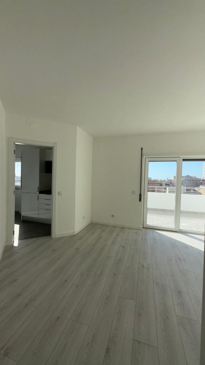 Apartamento tipo estúdio em open space com 14,9 m2, hall com 1,6 m2, casa de banho com 5,5 m2 e terraço com 70m2.